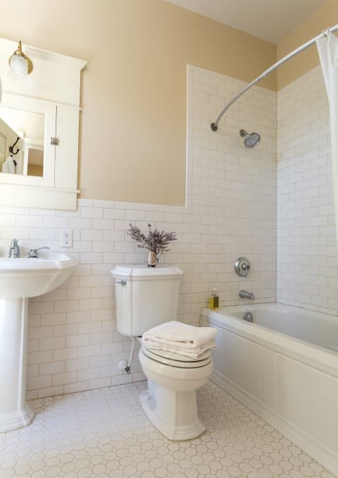 Suite 202 is a 211 square foot suite is adorned with an antique-white queen-sized iron bed and an antique dresser and mirror. Suite includes a private bath with shower/tub combo.